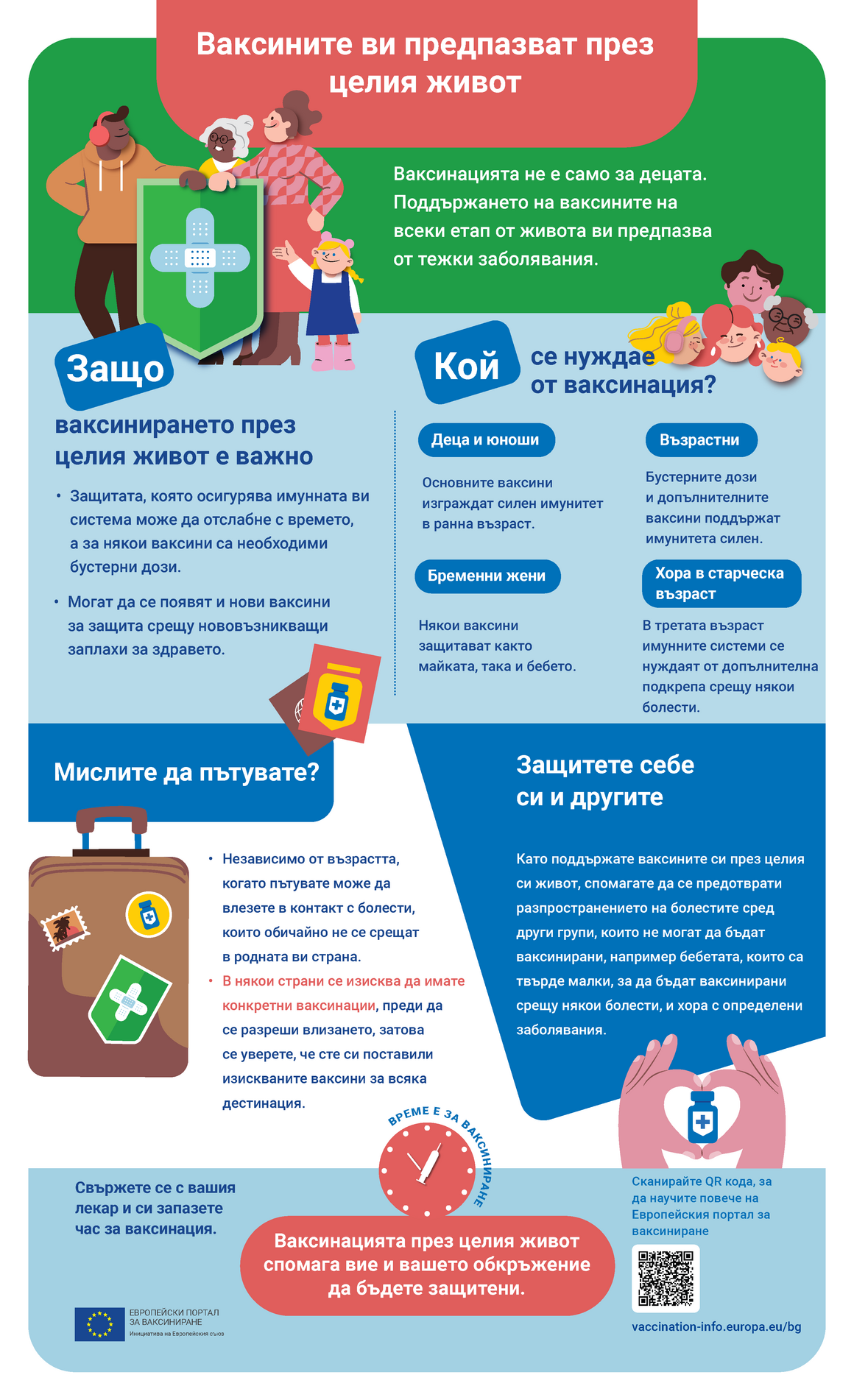 Инфографиката обяснява как ваксините могат да ви предпазват през целия живот от сериозни заболявания.