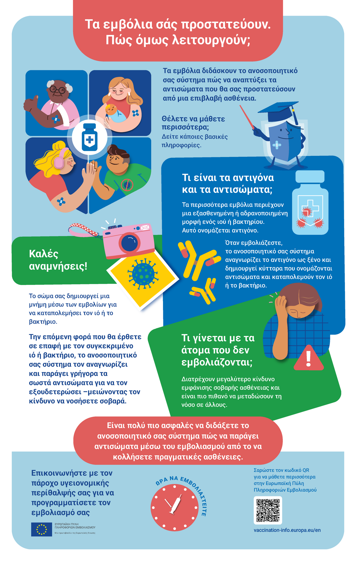 Αυτό το ενημερωτικό γράφημα εξηγεί ορισμένα βασικά στοιχεία σχετικά με τον τρόπο δράσης των εμβολίων.