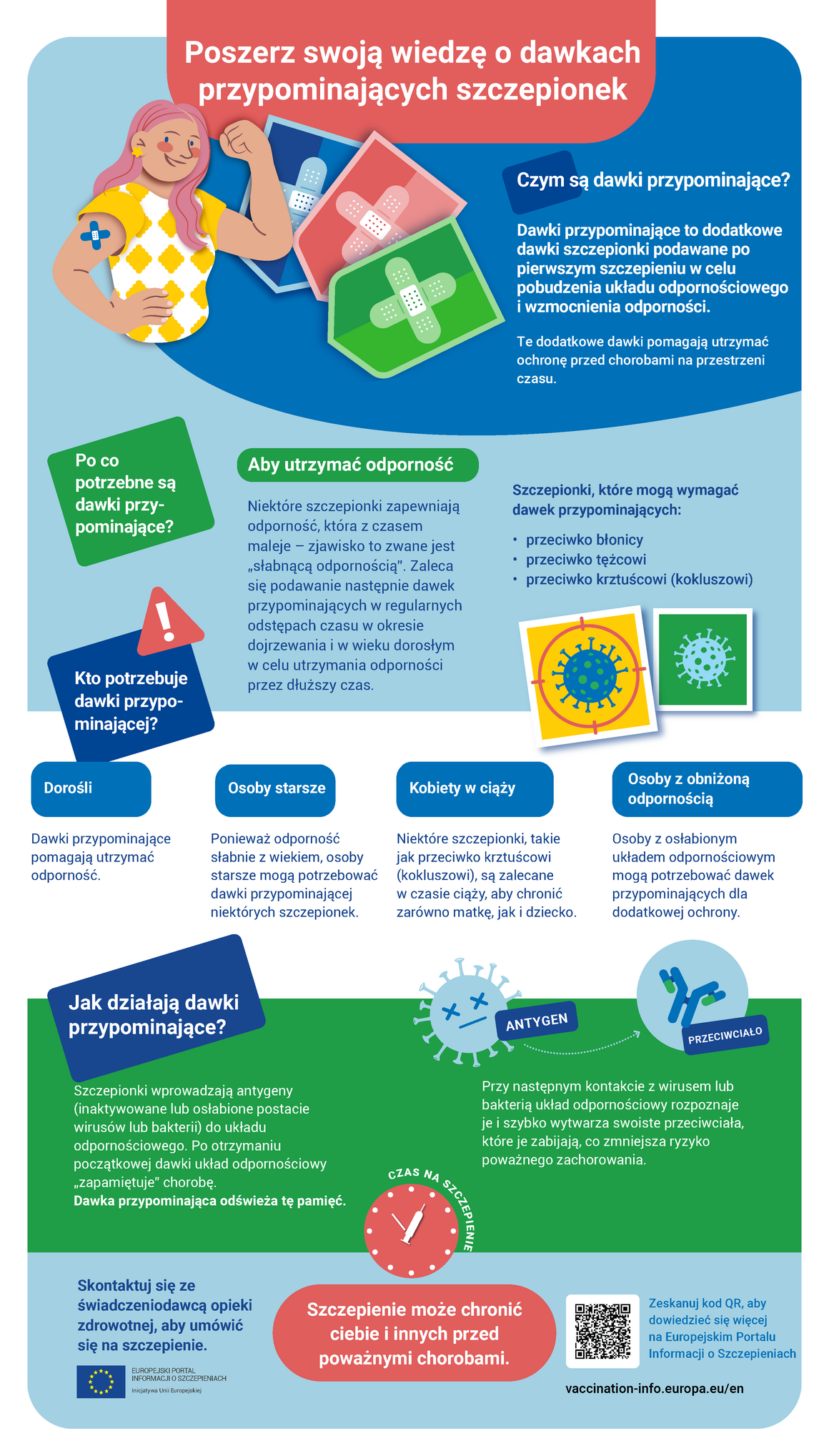 Ta infografika wyjaśnia, czym są szczepienia przypominające, dlaczego są potrzebne i jak działają.