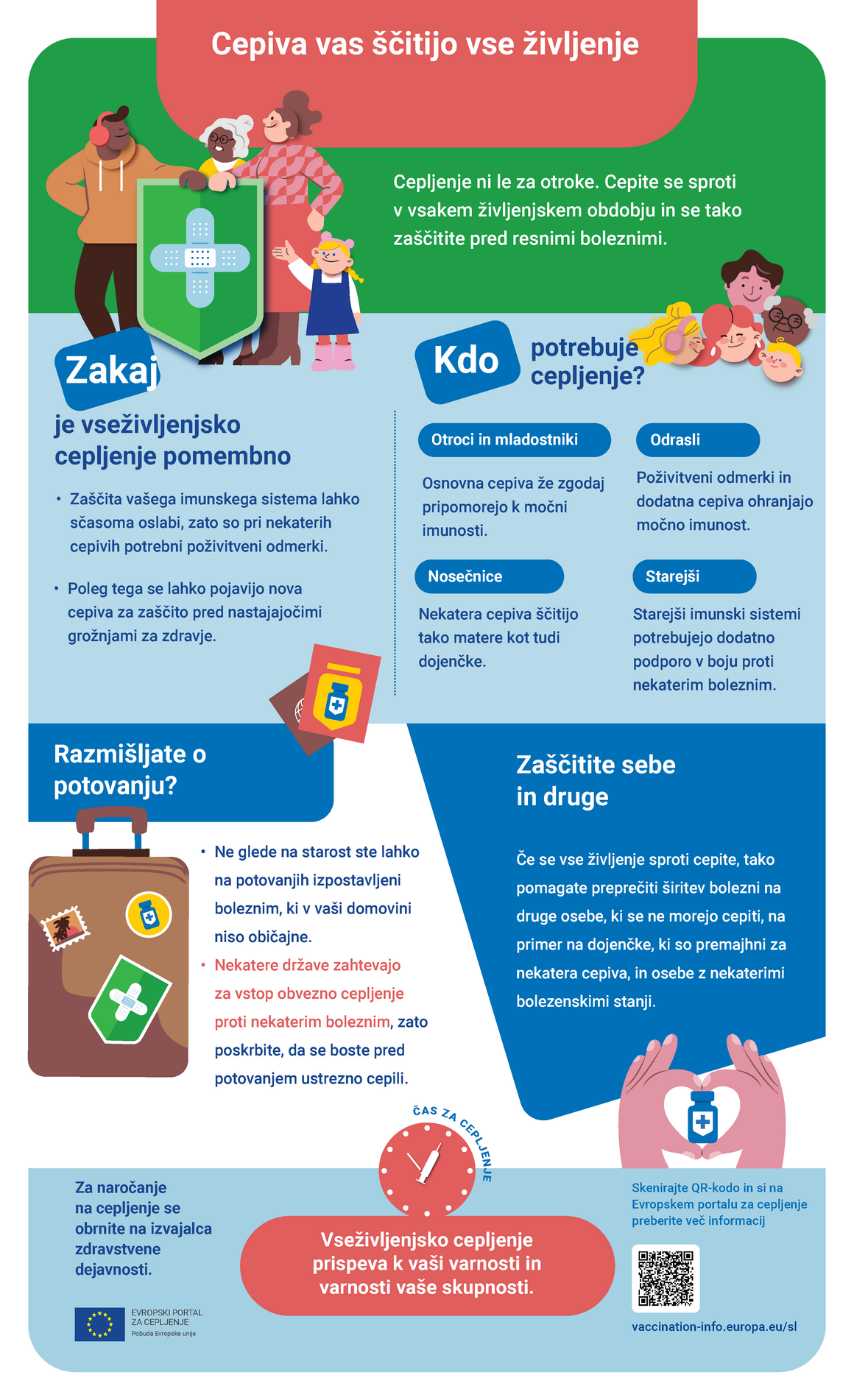 V tej infografiki je pojasnjeno, kako vas lahko cepiva skozi vse življenje ščitijo pred hudimi boleznimi.