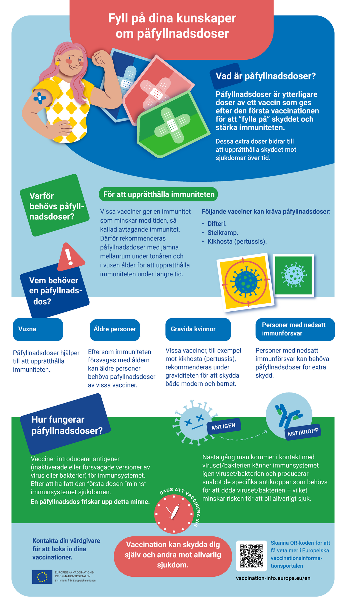 I den här infografiken förklaras vad påfyllnadsdoser är, varför de behövs och hur de fungerar.
